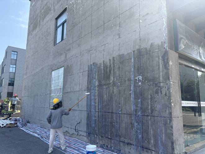 (六)罩面漆施工:最后喷涂罩面漆,它能提高涂层耐污性、耐候性和光泽度,使墙面更易清洁维护,有效延长仿石漆使用寿命,为翻新后的外墙提供持久保护。
